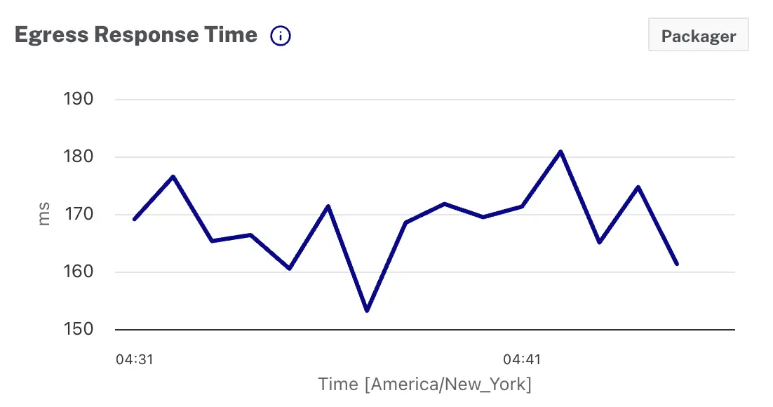 - 送信応答時間 - パッケージャーが各出力リクエストを処理するのにかかる時間。送信応答時間が高い場合、ユーザー体験に影響を与える可能性があり、OVPパフォーマンスにとって重要です。