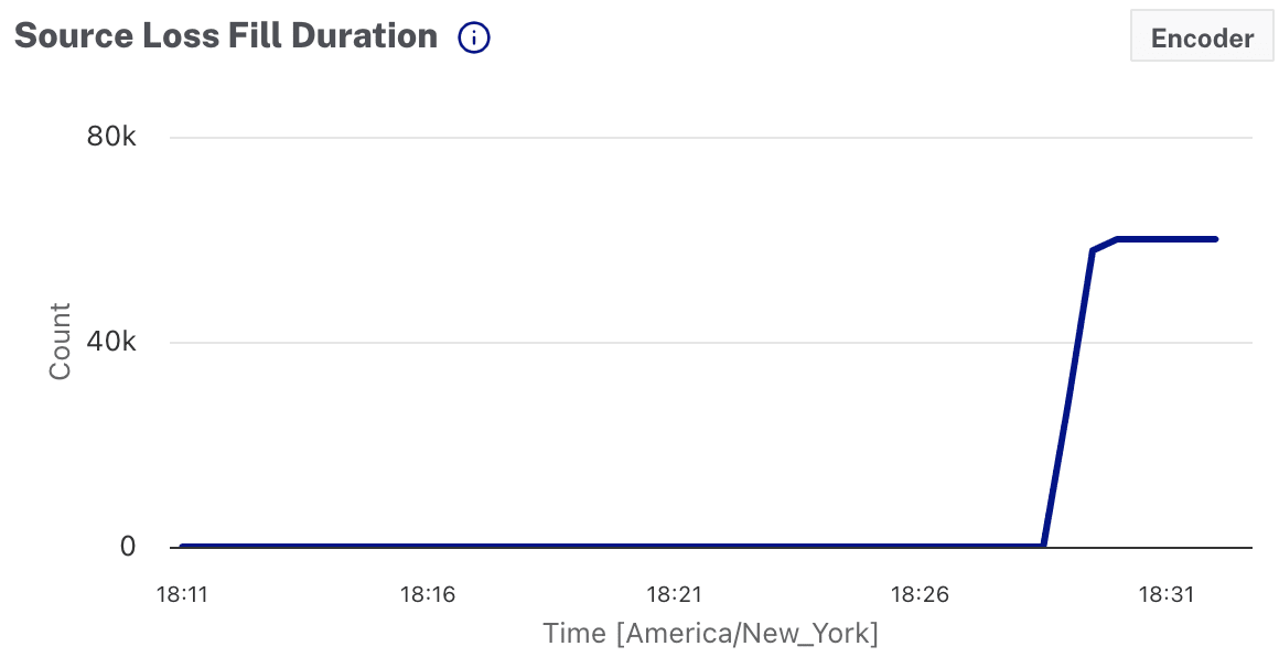 - ソース ロス補填時間 - ソースが失われた際に使用される補填フレーム(黒画面や最後のフレームの繰り返し)の時間をミリ秒単位で表示。最大60,000ミリ秒(1分)まで。